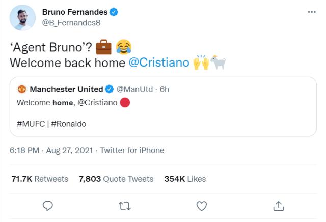 布鲁诺·费尔南德斯:“经纪人布鲁诺”?欢迎克里斯蒂亚诺回家!