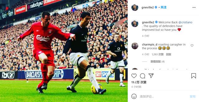 内维尔:欢迎回来!我们改善了防线,现在又得到了你!