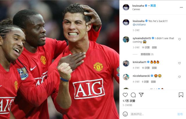 曼联传奇助教费兰也没有发文字,而是发布了一张此前C罗在曼联时期的动图。