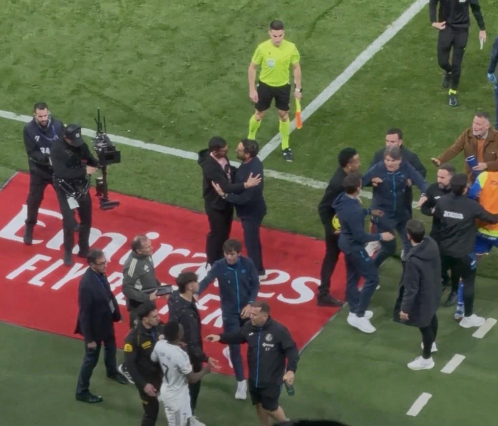 Jose Padilla在社交媒体上写道:“在皇家马德里对阵赫塔菲的比赛后,维尼修斯和米利唐与恩约姆发生了激烈冲突!人们不得不上前将球员们拉开。”