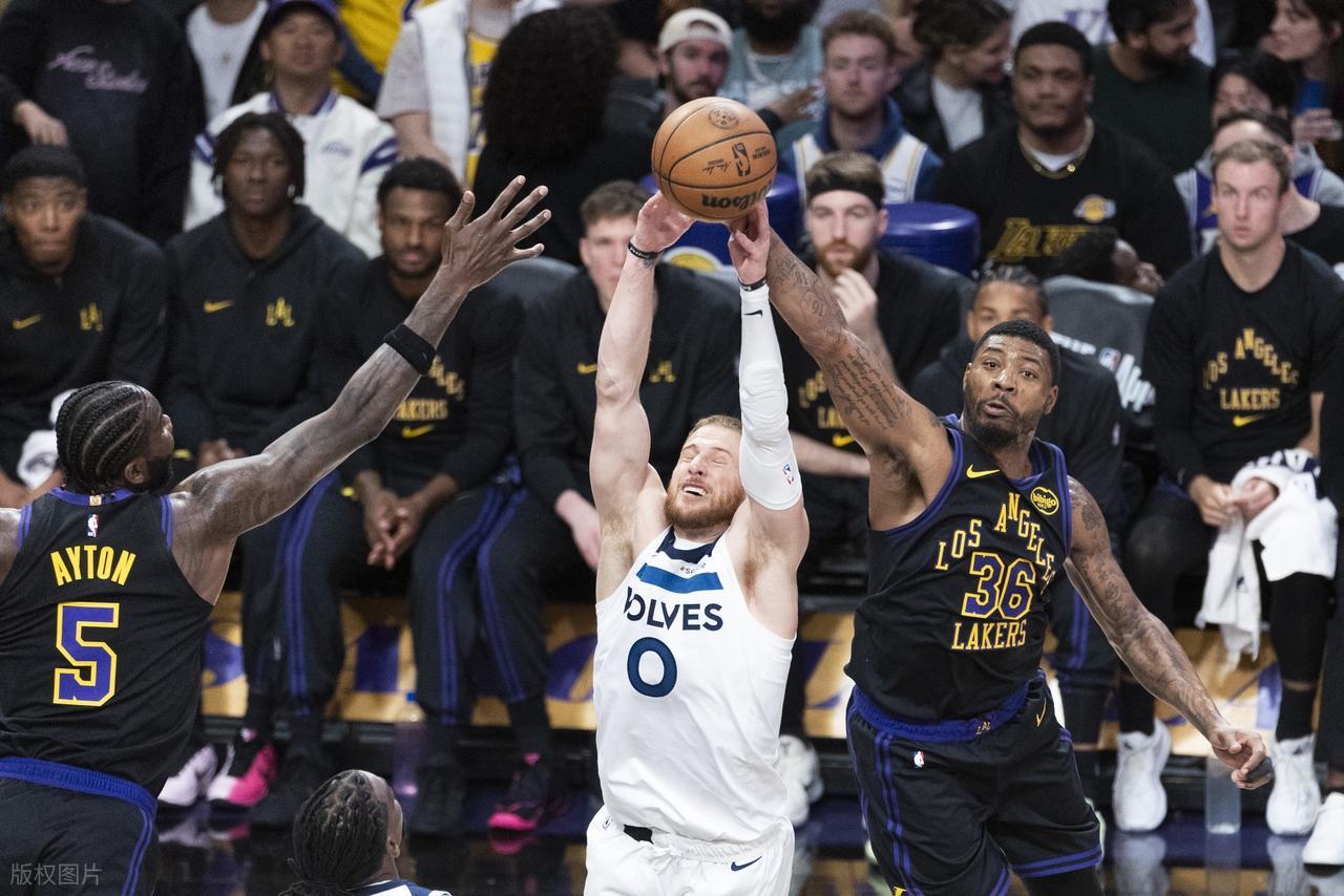 进入第二节,戈贝尔两罚一中为森林狼先拿分数,里德紧接着命中三分,眼看分差要被拉开,艾顿挺身而出,一记补篮加顺下暴扣瞬间提振湖人士气,随后他再接里夫斯传球,一记平地惊雷般的暴扣,彻底点燃主场氛围。湖人趁机发力,很快就抹平分差,迪文岑佐命中三分试图为森林狼止血,可艾顿依旧强势,补篮加里夫斯的托举上篮,继续扩大湖人攻势。中段,手感冰凉的东契奇终于命中三分,爱德华兹则依旧深陷打铁怪圈,好在兰德尔手感在线,而艾顿更是打戈贝尔打得得心应手,频频完成得分。后半段,东契奇的撤步三分加顺下上篮,搭配八村塁的三分命中,湖人成功追平比分,半场战罢,两队打成45平。数据上,爱德华兹10投仅1中,里夫斯8投1中,东契奇15投5中,双方核心的状态都不尽如人意。