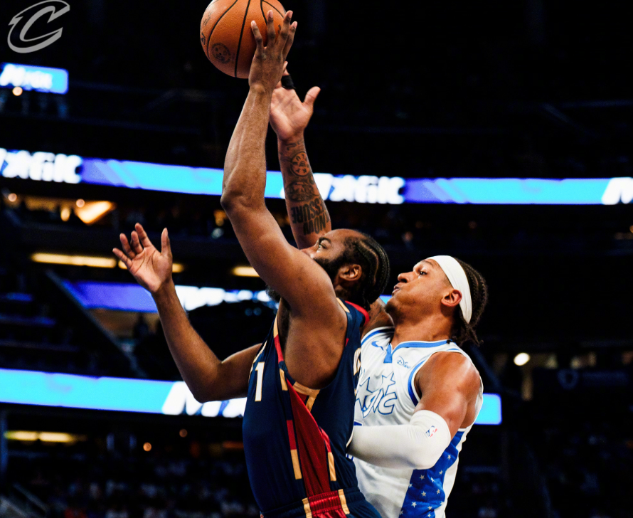 中段两队轮流罚球,但骑士外线命中率大幅下滑。直到后半段,哈登突破挑篮+埃利斯空位三分球才勉强回应。班凯罗和杰旺卡特继续罚球,米切尔和哈登单打追平比分,半场战成62平。进入第三节,哈登撤步三分+加速过掉班凯罗上篮,此后哈登继续喂饼莫布里,不过魔术依靠贝恩内突外投,再度打停骑士,贝恩还做出了昔日队友莫兰特的“Bang”动作。中段席尔瓦和班凯罗继续上分,骑士也能咬住比分,但整体高度太矮了。节末托布连拿5分止血,但节末杰旺卡特和霍华德下三分雨,贝恩拉杆上篮,三节打完,骑士89-96落后。