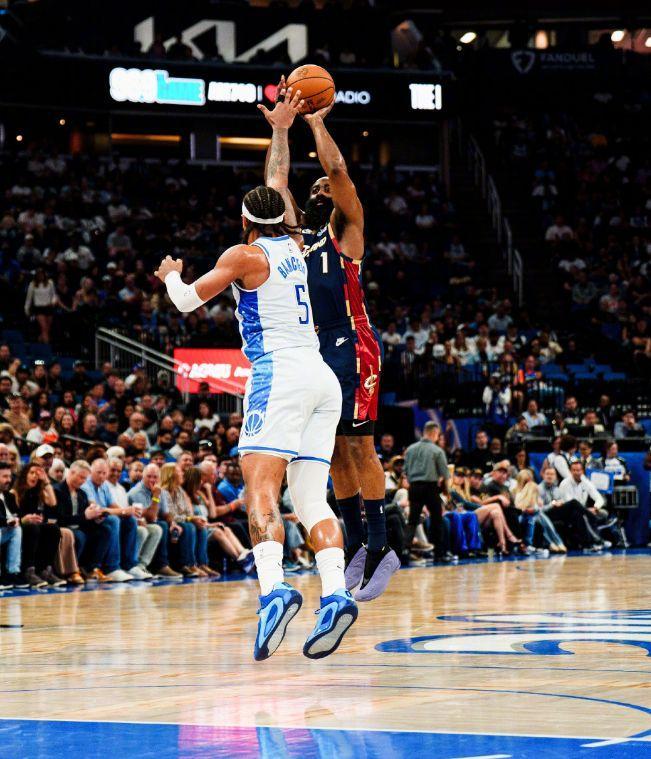 自从哈登到来之后,骑士的整体状态有了很大的提升,如今更有希望冲击东部第三的位置。面对本赛季已经两次战胜过的魔术,骑士有很大的信心,尤其是在阵容轮换上,骑士更是能够克制魔术。骑士在开场之后便迅速进入状态,梅里尔稳稳命中三分球,而魔术则非常注意哈登与队友之间的串联,希望切断骑士的进攻发起点。哈登并没有被魔术的防守打乱节奏,他先是突破上篮得手,随后又用自己最擅长的胯下运球晃开防守重心,精准命中三分球。当魔术缩小包围圈时,哈登又在同样位置再进一记三分球。只不过魔术对于骑士的打法非常熟悉,他们利用防守反击不断冲击着篮筐,在首节结束时取得了3分的领先。